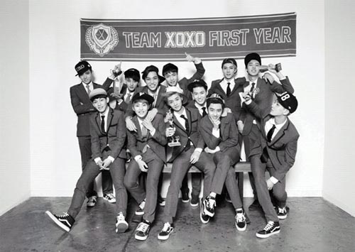 และหลังจากออกมินิอัลบั้ม MAMA ออกมาในปี 2555 แล้ว พวกเขาก็ได้กลับมากับอัลบั้มเต็ม XOXO ที่ทั้ง 12 คนจาก 2 ทีมจะมาทำเพลงและแสดงด้วยกัน โดยมีทั้งเวอร์ชั่นเกาหลี และ จีนแมนดาริน โดยเพลง Wolf ที่พวกเขาปล่อยออกมาก็เป็นที่พูดถึงอย่างมาก แต่เพลงที่ประสบความสำเร็จที่สุดคือเพลง Growl ที่เพิ่มเข้าไปตอนหลังในอัลบั้มปกพิเศษ ที่กลายเป็นบทเพลงแห่งปีในปี 2556 เลย จนพวกเขาติดอันดับ 1 บอยแบนด์แห่งปีของเกาหลี ในหลายๆการจัดอันดับเลย