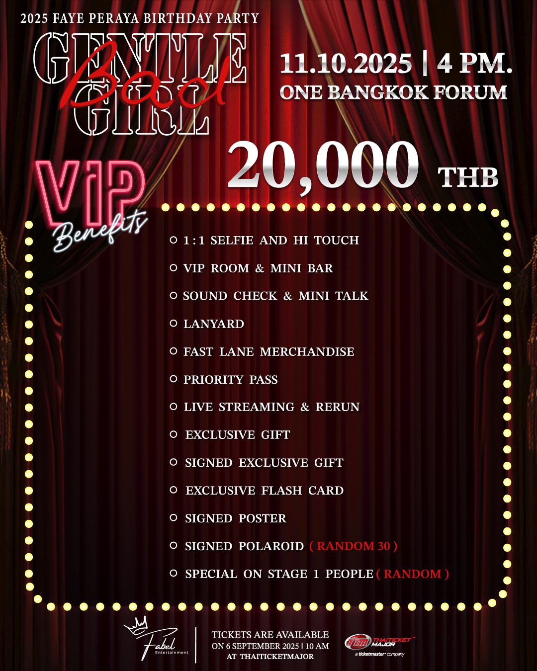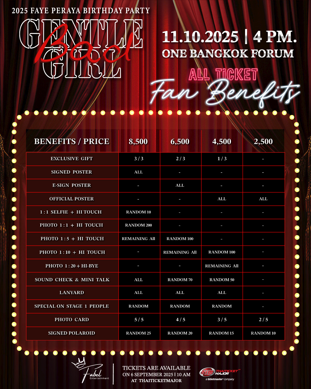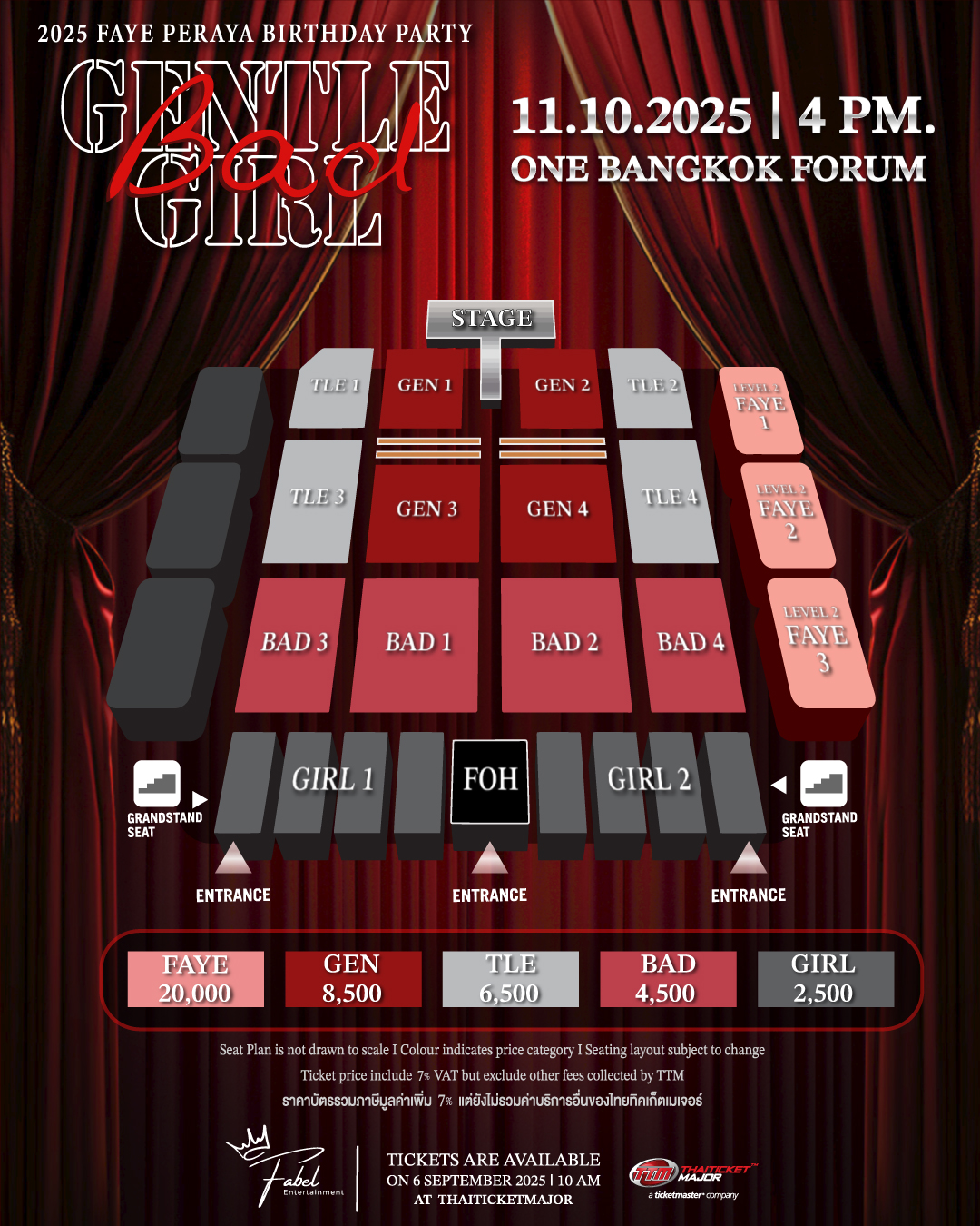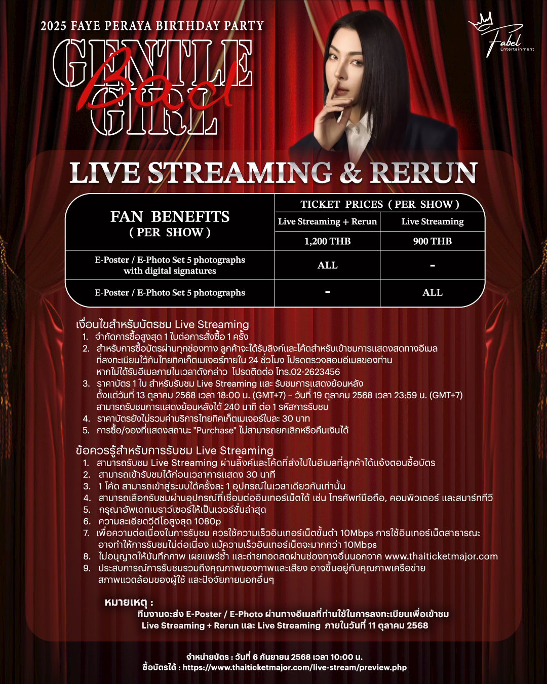 - บัตรคอนเสิร์ตใช้สำหรับการเข้าชมงาน 2025 FAYE PERAYA BIRTHDAY PARTY “GENTLE Bad GIRL” เท่านั้น