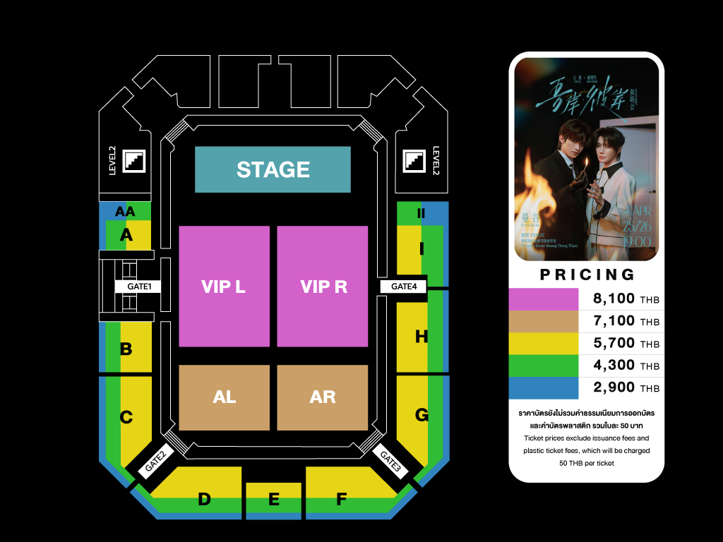 | ราคาบัตร : | 8,100 / 7,100 / 5,700 / 4,300 / 2,900 บาท |