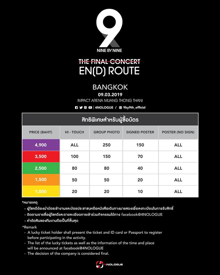 ติดตามรายละเอียดและสอบถามเพิ่มเติมทาง Facebook, Instagram, Twitter, Youtube @4NOLOGUE และทาง Instagram @9by9th_official