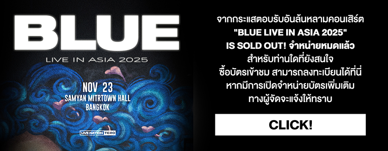 บริทิชบอยแบนด์ขวัญใจพี่สาวเจนวาย ‘BLUE’ ประกาศเอเชียทัวร์ในรอบ 10 ปี ปักหมุด 4 เมืองใหญ่ทั่วเอเชียตลอดเดือนพฤศจิกายนนี้ใน “BLUE LIVE IN ASIA” 4 หนุ่มการันตี พร้อมขนเพลงฮิตที่แฟน ๆ คิดถึงมาร้องให้ฟินถึงที่แน่นอน แฟนชาวไทยเคลียร์คิวรอเลย เจอกันวันอาทิตย์ที่ 23 พฤศจิกายน 2568 ที่สามย่าน มิตรทาวน์ ฮอลล์