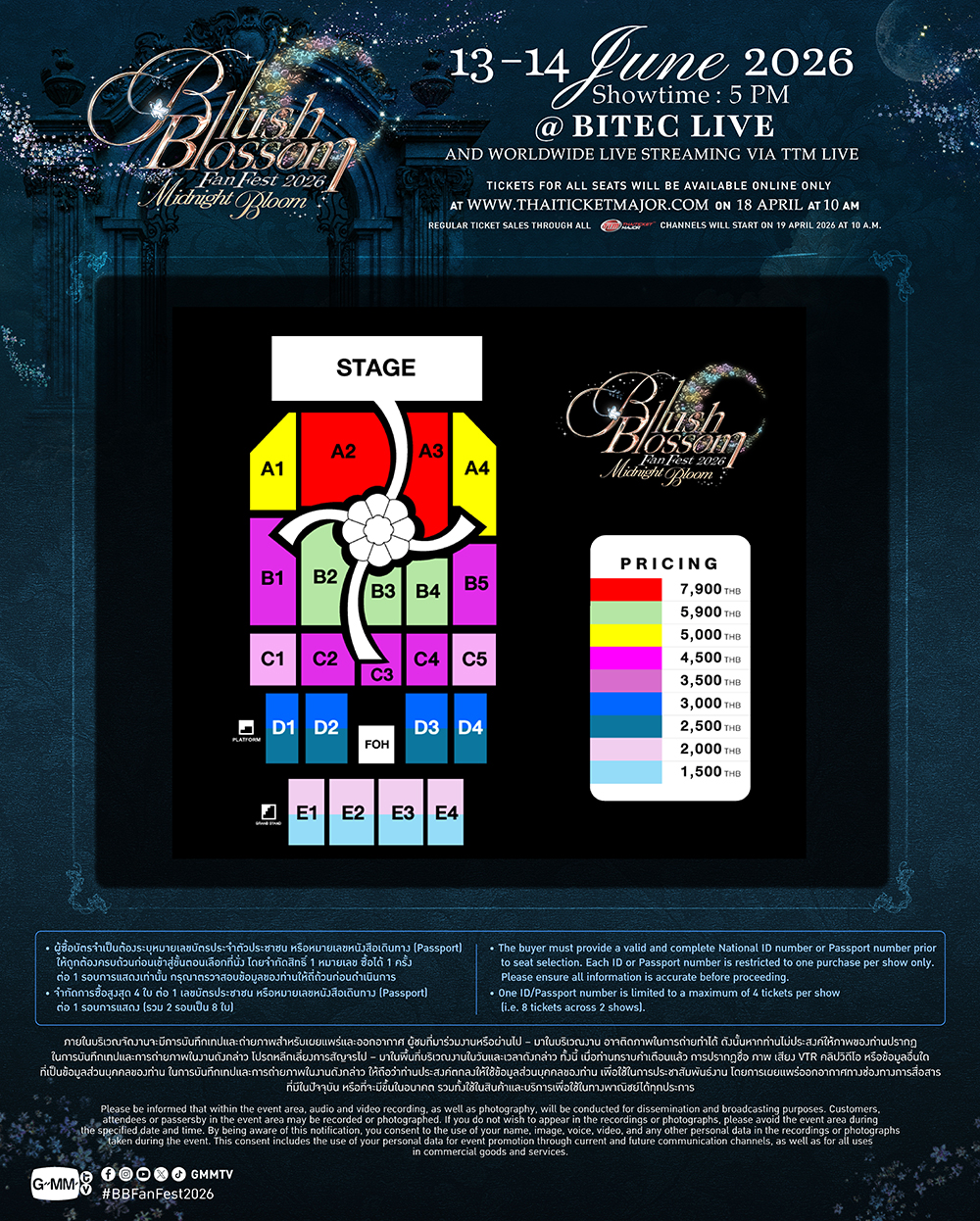 4. ราคาบัตรยังไม่รวมค่าบริการไทยทิคเก็ตเมเจอร์ใบละ 30 บาท