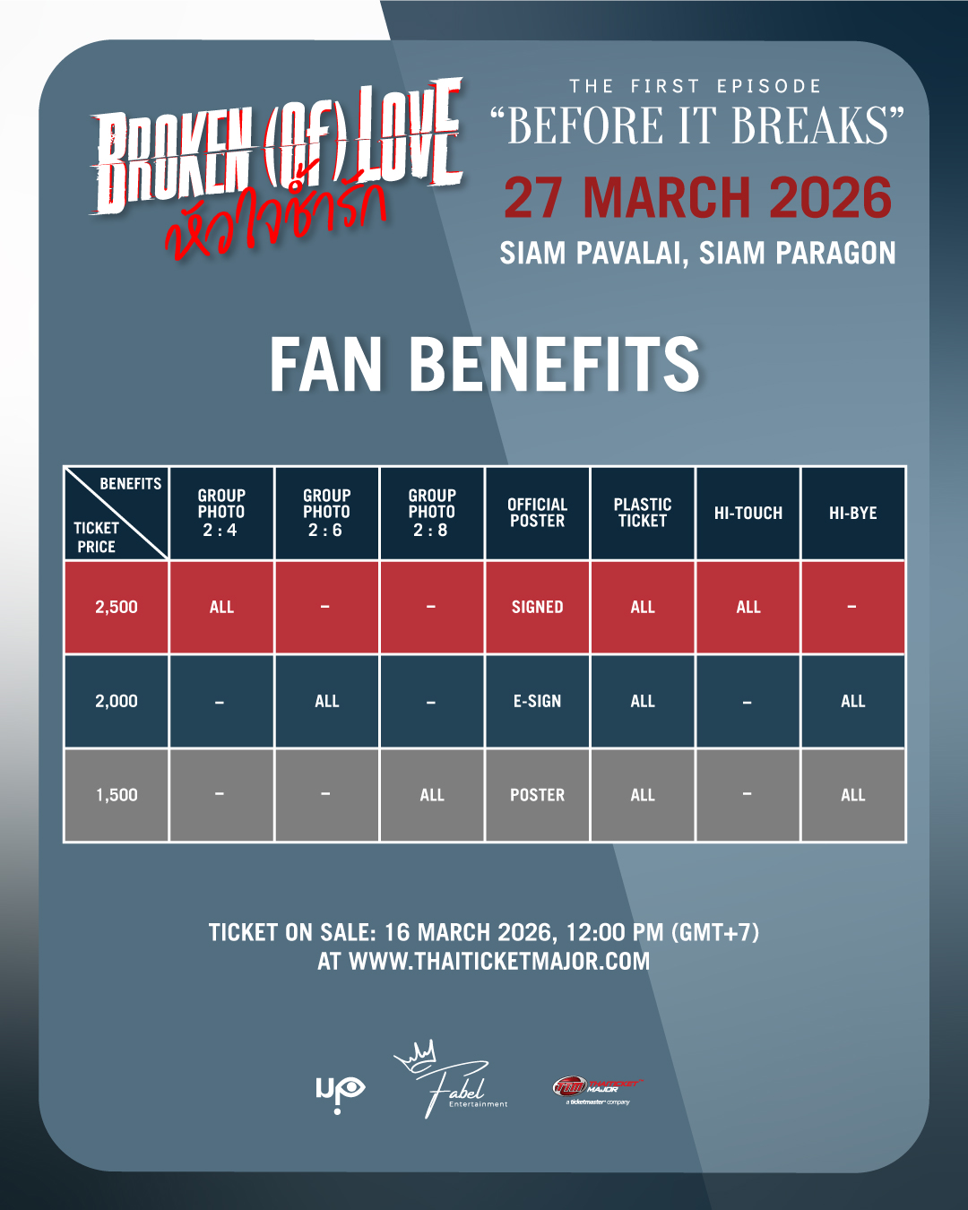 - บัตรใช้สำหรับการเข้าชมงาน THE FIRST EPISODE “BROKEN (Of) LOVE : Before It Breaks” เท่านั้น