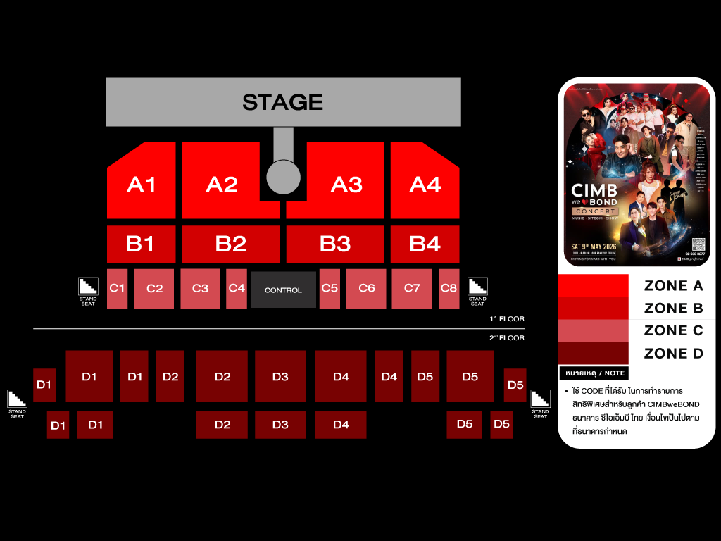 1 Code ที่ได้รับ สามารถใช้จองบัตรคอนเสิร์ตได้ โดยจำนวนที่นั่งเป็นไปตามเงื่อนไขที่ทางธนาคารกำหนด