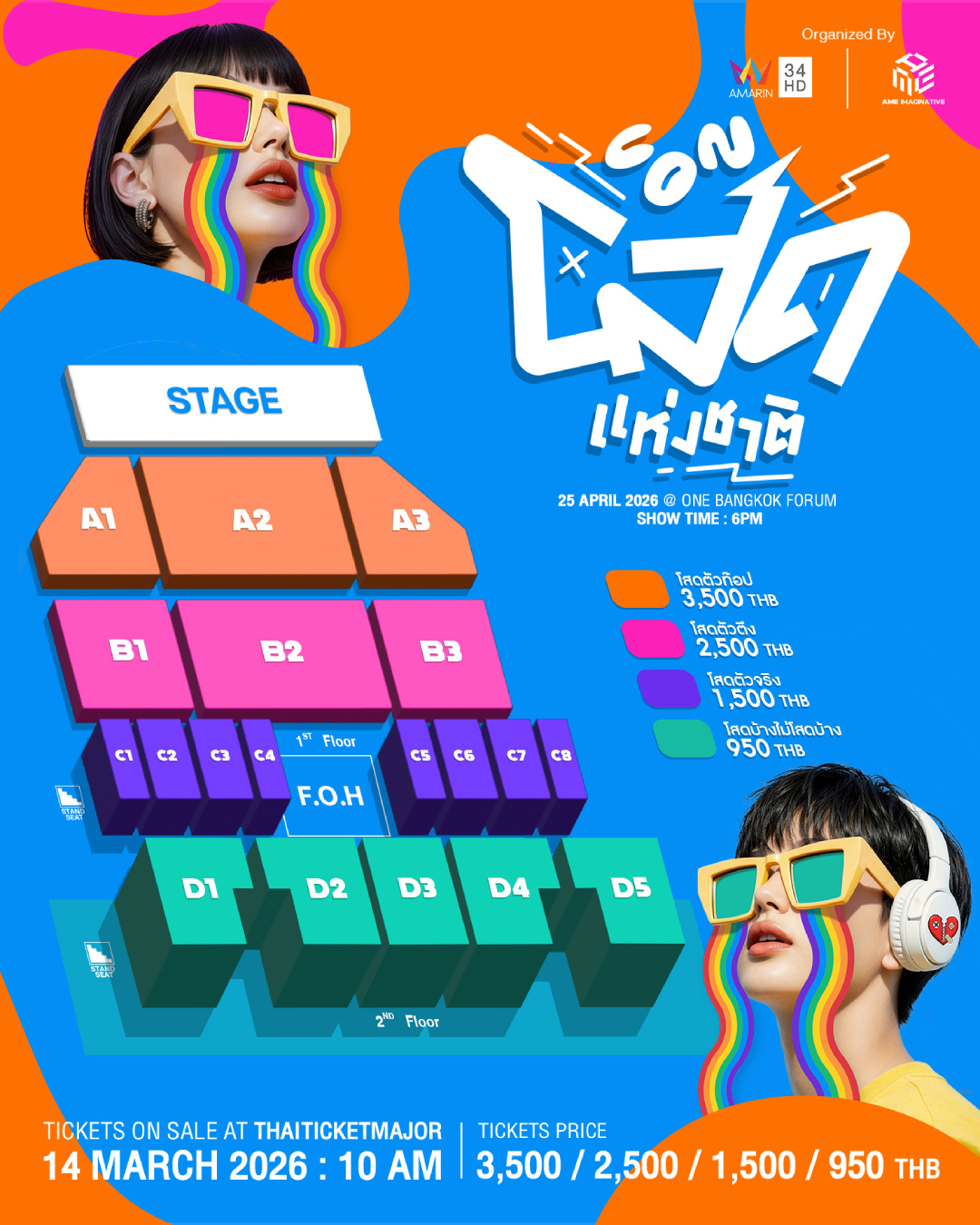 | วันเปิดจำหน่ายบัตรรอบทั่วไป : | วันเสาร์ที่ 14 มีนาคม 2569 | ตั้งแต่เวลา 10:00 น. เป็นต้นไป |