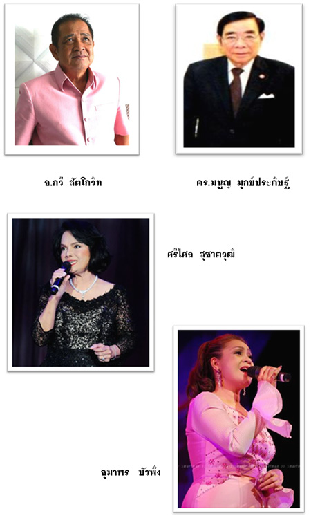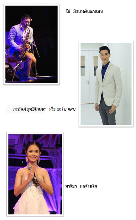 คอนเสิร์ตฯ ในครั้งนี้ ถ่ายทอดบทเพลงอันไพเราะโดย 2 ศิลปินสาว พลังเสียงทรงเสน่ห์ ศรีไศล สุชาตวุฒิ และ อุมาพร บัวพึ่ง ร่วมทั้ง โก้ มิสเตอร์แซกแมน นักร้องผู้มีเสียงนุ่มลึก และนักแซกโซโฟนอันดับต้น ของเมืองไทย อีกทั้ง นักร้องรุ่นใหม่ กรกันต์ สุทธิโกเศศ หรือ อาร์ม KPN และ มาริษา มลจังหรีด นักร้องประกวดรางวัลชนะเลิศหลายเวที