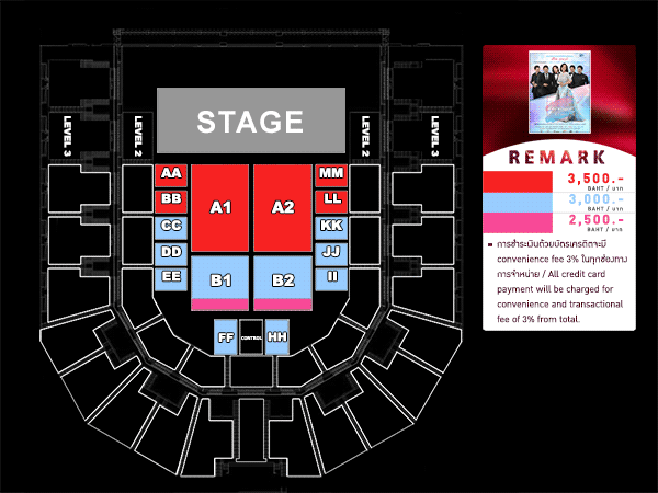 บัตรราคา 3,500 , 3,000 และ 2,500 บาท