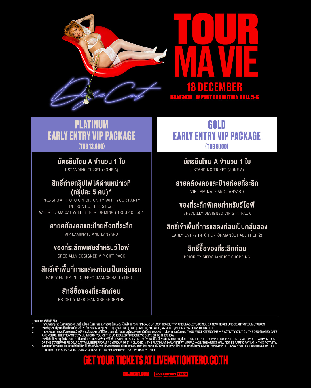 แล้วเจอกันกับเอเชียทัวร์ครั้งแรก Doja Cat – Ma Vie World Tour วันพฤหัสบดีที่ 18 ธันวาคม ที่อิมแพ็ค เอ็กซิบิชั่น ฮอลล์ 5-6 บัตรมีจำนวนจำกัด เปิดจำหน่ายแล้ววันนี้ที่ไทยทิคเก็ตเมเจอร์ทุกสาขา หรือ