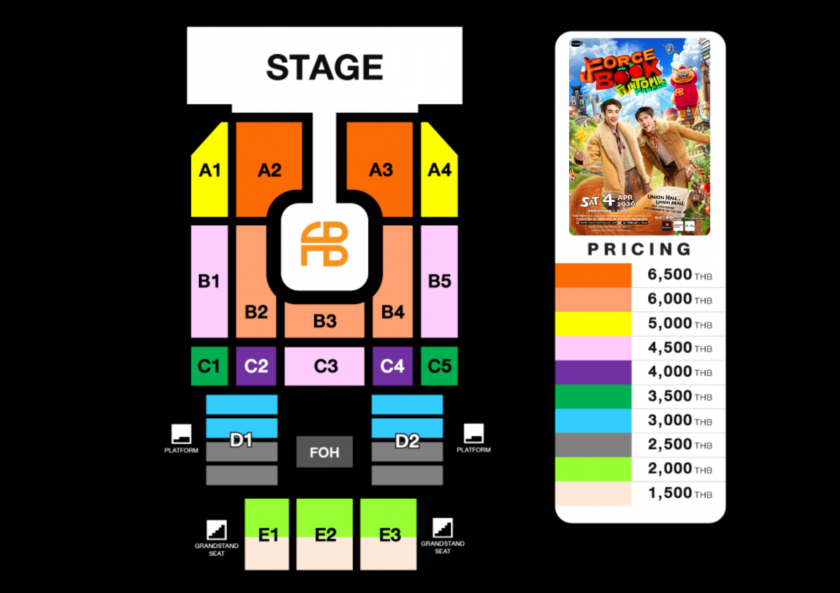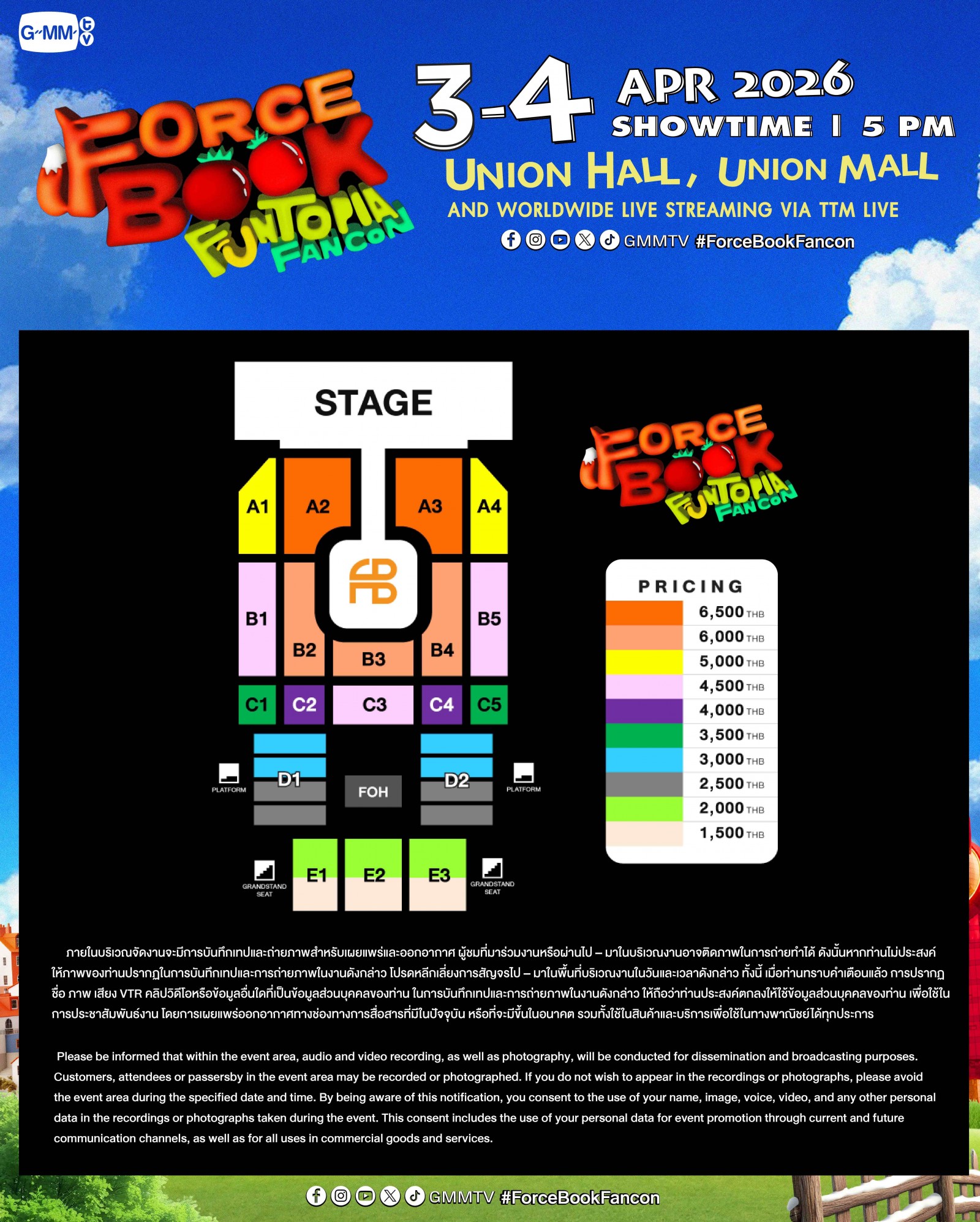 1. *ผู้ชมบัตร 6,500 / 6,000 / 5,000 และ 4,500 บาท ได้รับสิทธิพิเศษในการสั่งซื้อสินค้า GMMTV Official Merchandise ล่วงหน้า และรับสินค้าที่บูธหน้างานในช่องทางพิเศษได้ทันที (รายละเอียดและขั้นตอนการสั่งซื้อสินค้าล่วงหน้า จะแจ้งให้ทราบอีกครั้งในภายหลัง)