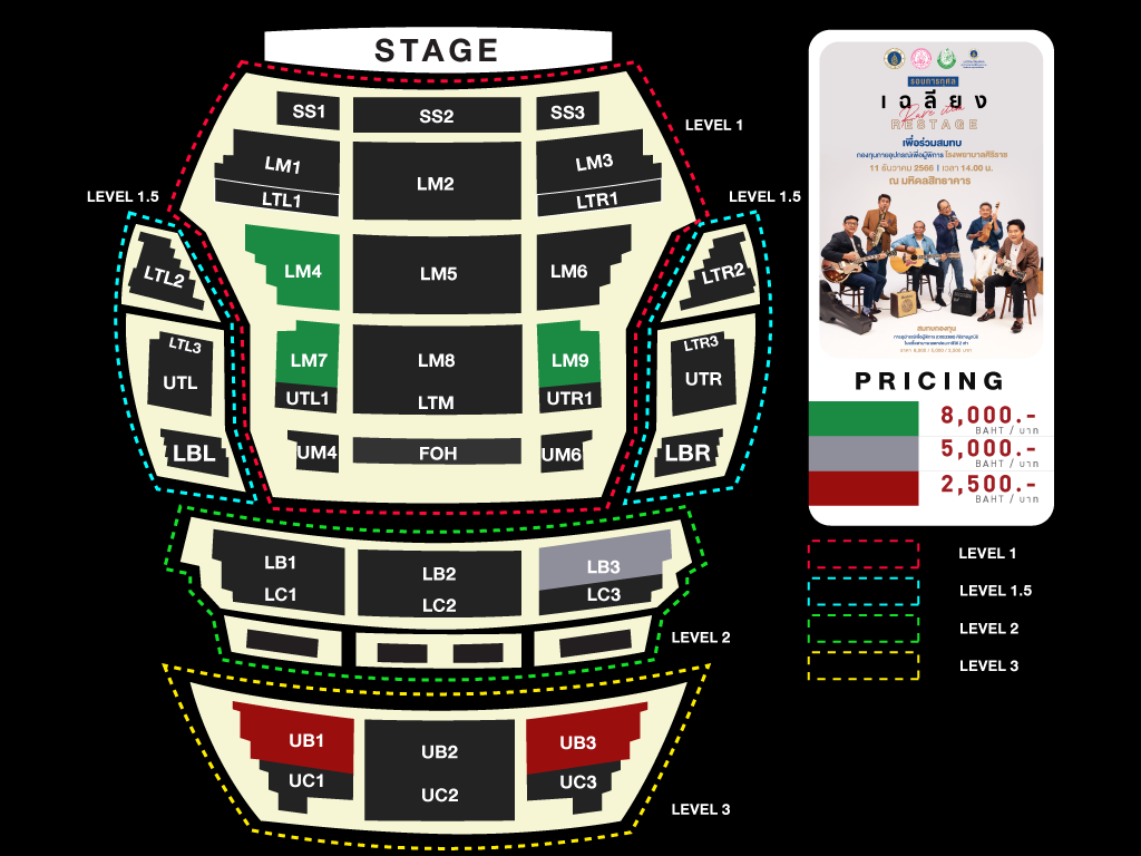 • บัตรทุกใบ เป็นบัตรนั่ง