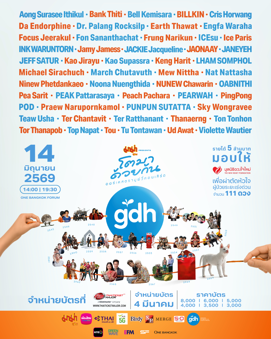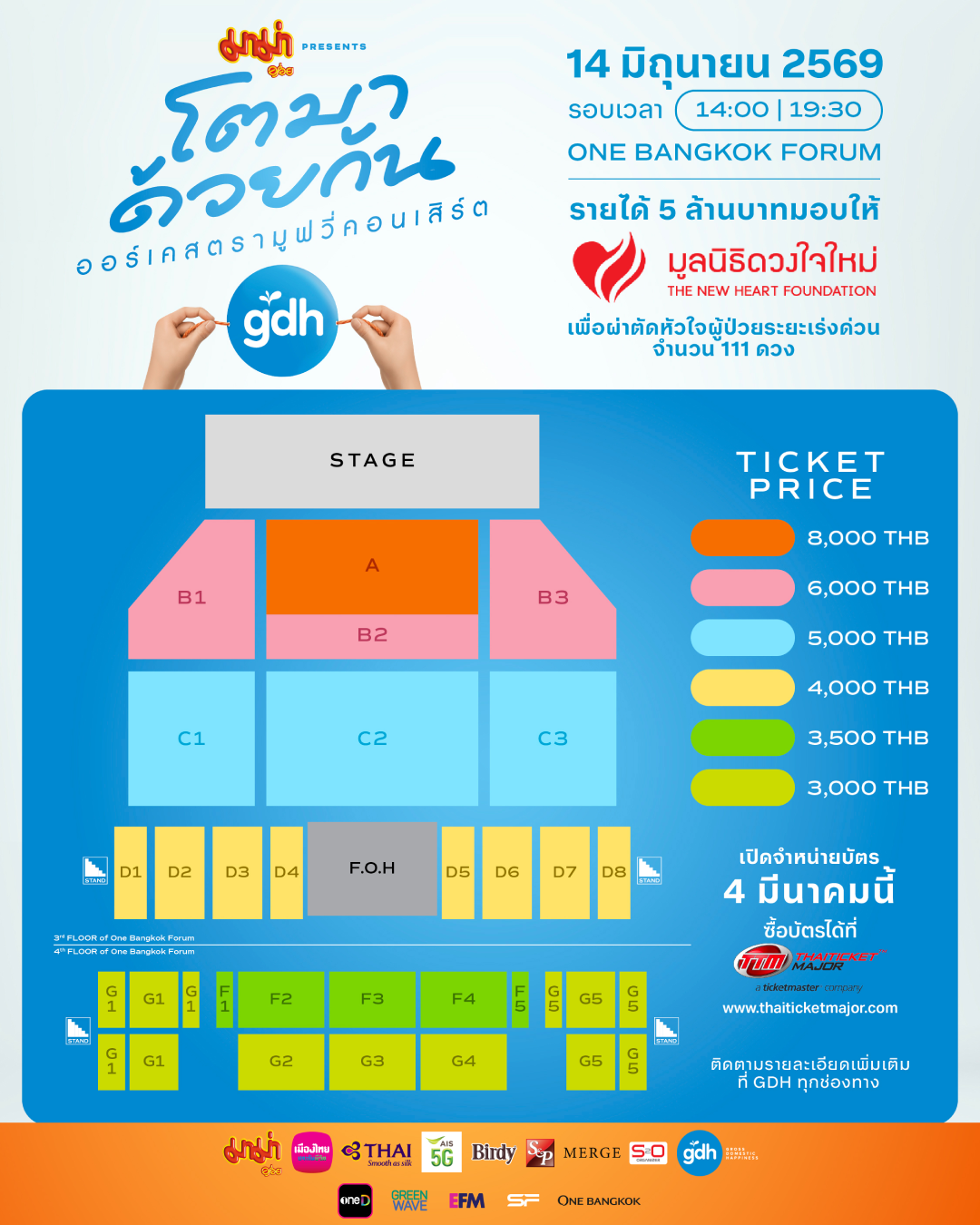 บัตรราคา: 8,000 / 6,000 / 5,000 / 4,000 / 3,500 / 3,000 บาท