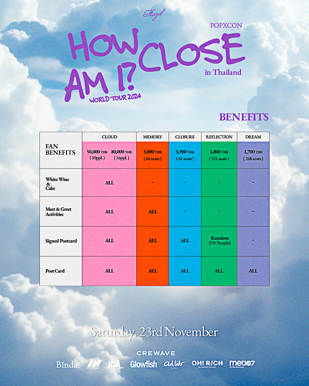 Cloud 50,000 (Room with 10 tickets), 80,000 (Room with 16 tickets)