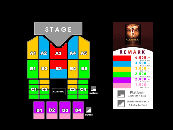 บัตรราคา 4,000 / 3,500 / 3,000 / 2,500 / 2,000 และ 1,500 บาท