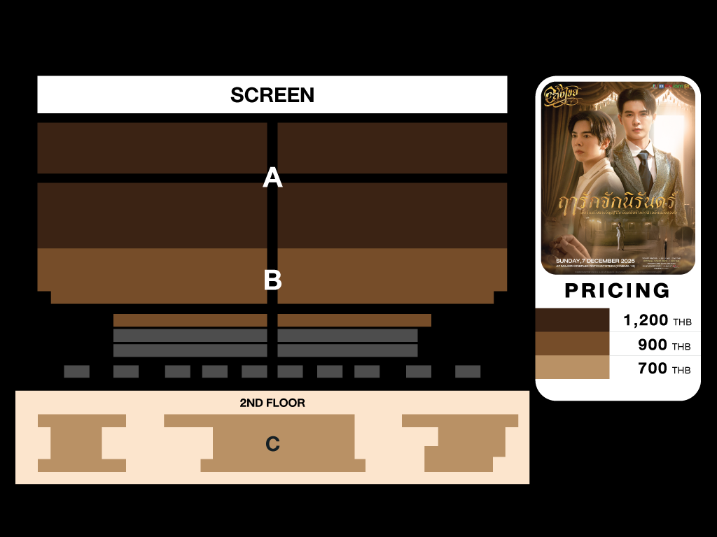 | บัตรที่นั่งราคา : | 1,200 บาท / 900 บาท / 700 บาท |