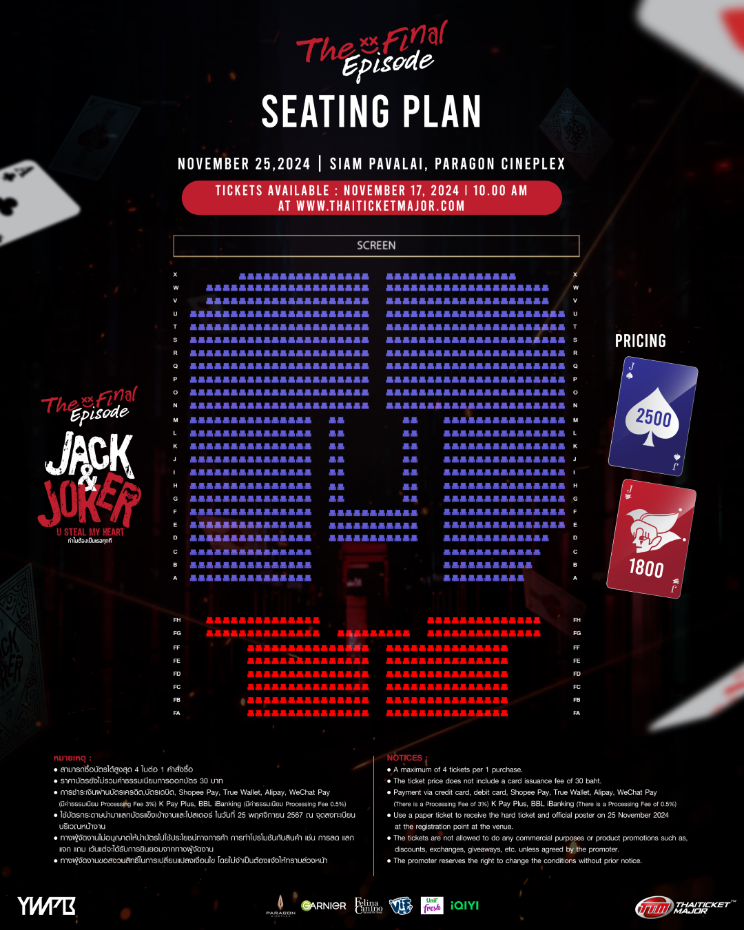 - ราคาบัตรยังไม่รวมค่าบริการการออกบัตรไทยทิคเก็ตเมเจอร์ 30 บาท