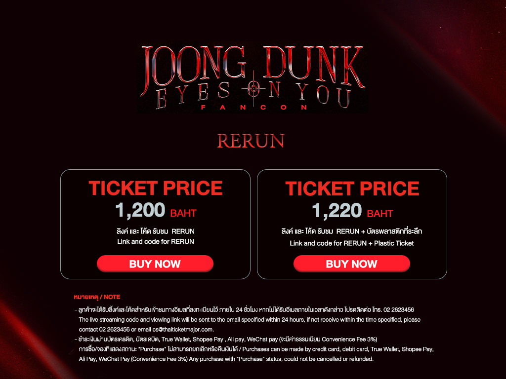 www.thaiticketmajor.com เท่านั้น (ระบบคิวออนไลน์จะแสดงที่หน้าเว็บไซต์ตั้งแต่เวลา 9:00 น. และจำหน่ายบัตรเวลา 10:00 น. เป็นต้นไป )
