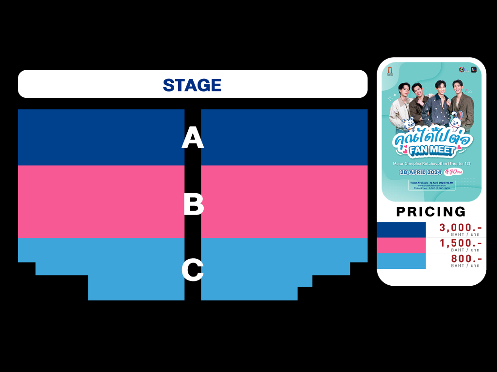 - ราคาบัตรยังไม่รวมค่าบริการไทยทิคเก็ตเมเจอร์ใบละ 30 บาท
