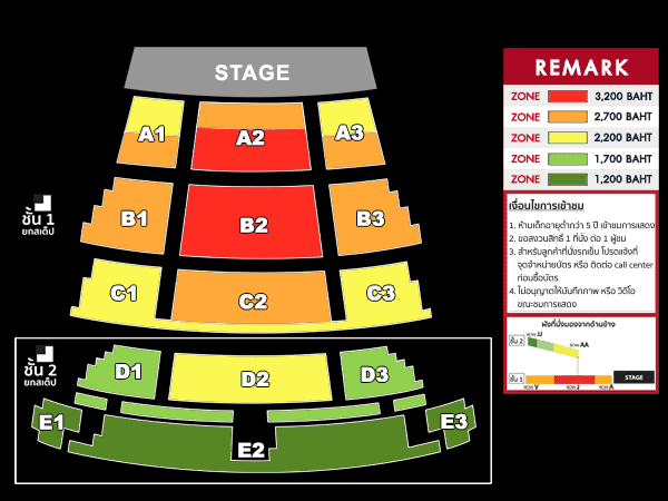- กรุณาไปก่อนเวลา หากการแสดงเริ่มแล้ว ผู้ชมจะไม่สามารถเข้าชมการแสดงในช่วงแรกได้ และผู้จัดขอสงวนสิทธิ์ไม่คืนเงินในทุกกรณี