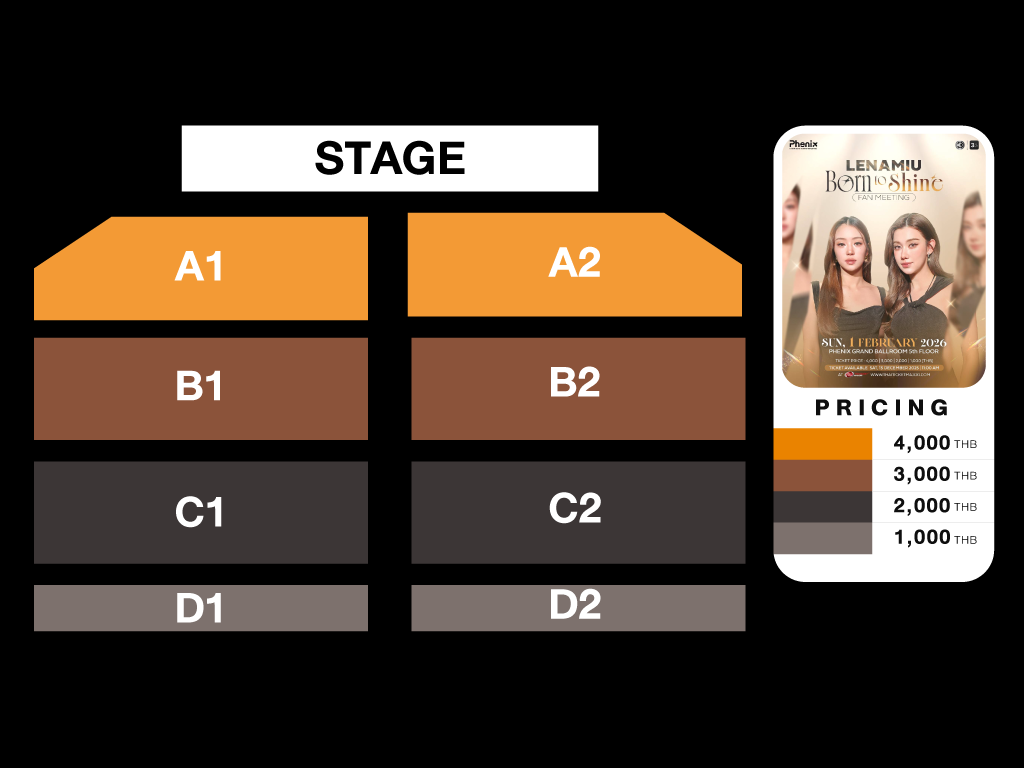 - ราคาบัตรยังไม่รวมค่าบริการไทยทิคเก็ตเมเจอร์ใบละ 30 บาท