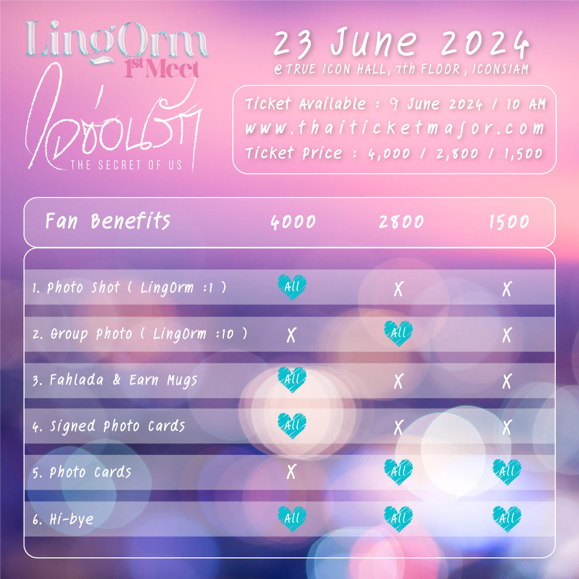 | เปิดขายบัตร : | วันอาทิตย์ที่ 9 มิถุนายน 2567 เวลา 10:00 น. |
