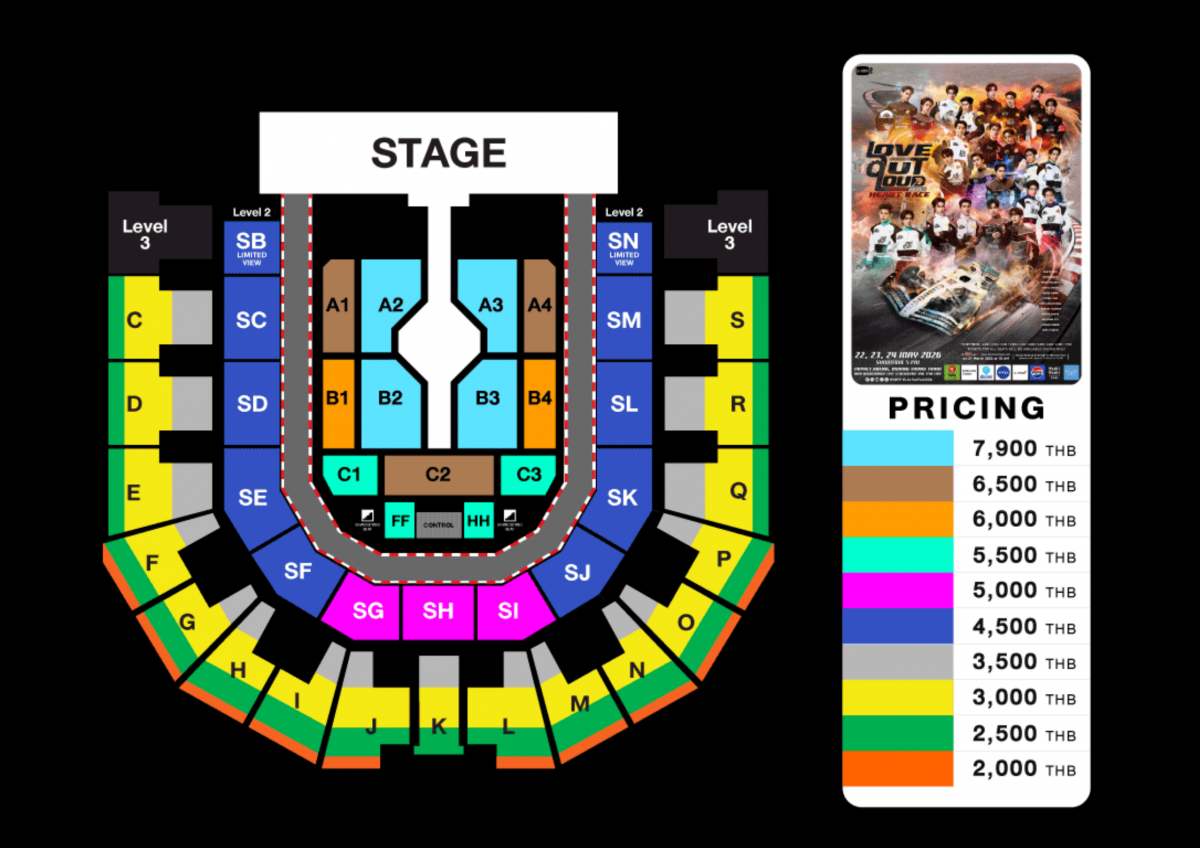 4. ระบบจะทำการ Random และประกาศรายชื่อผู้ได้รับสิทธิ์ Hi - Session สำหรับบัตร 6,000 บาท และรายชื่อผู้ได้รับ OFFICIAL POSTER (Signed) สำหรับบัตร 6,500 บาท ของการแสดงทั้ง 3 รอบ ในวันที่ 18 พฤษภาคม 2569 ทางโซเชียลมีเดียของ GMMTV (สงวนสิทธิ์บัตรที่นั่งหนึ่งใบ สามารถรับ Fan Benefit จากการ Random ได้เพียง 1 สิทธิ์เท่านั้น)