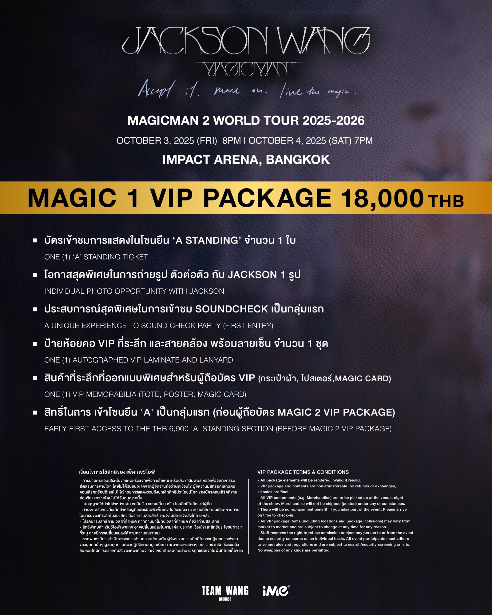 MAGIC 1 PACKAGE 18,000 บาท (บัตรยืน) / MAGIC 2 PACKAGE 9,000 บาท (บัตรยืน)