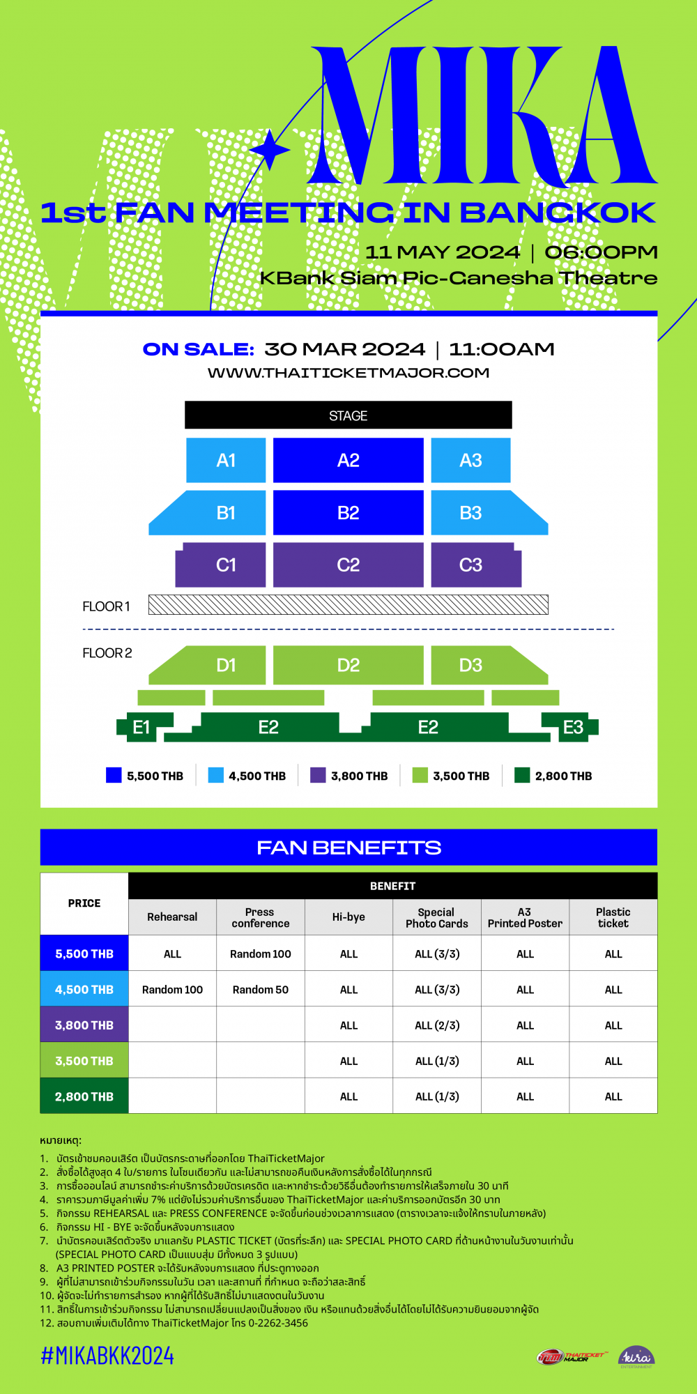 | ช่องทางการจำหน่าย : | thaiticketmajor.com และไทยทิคเก็ตเมเจอร์ทุกสาขา |
