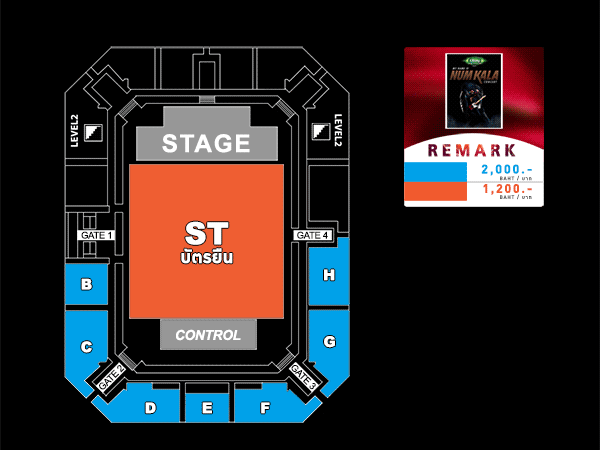 - สำรองบัตรนั่ง โซน B เเละ C ไว้ให้เฉพาะผู้ซื้อบัตรที่จุดจำหน่ายเท่านั้น (เคานเตอร์ไทยทิคเก็ต, เมเจอร์ อีจีวี, ไปรษณีย์ไทย, เทสโก้ โลตัส, Franchise และคอลเซนเตอร์)