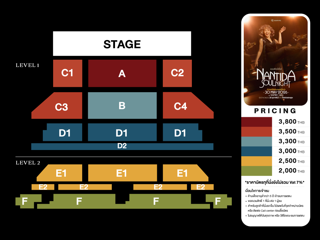 (ราคาบัตรทุกที่นั่งยังไม่รวม Vat 7%)
