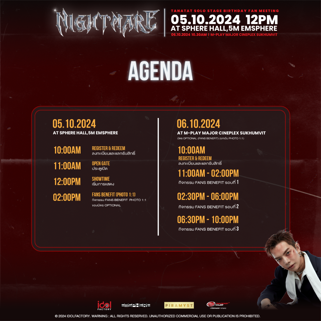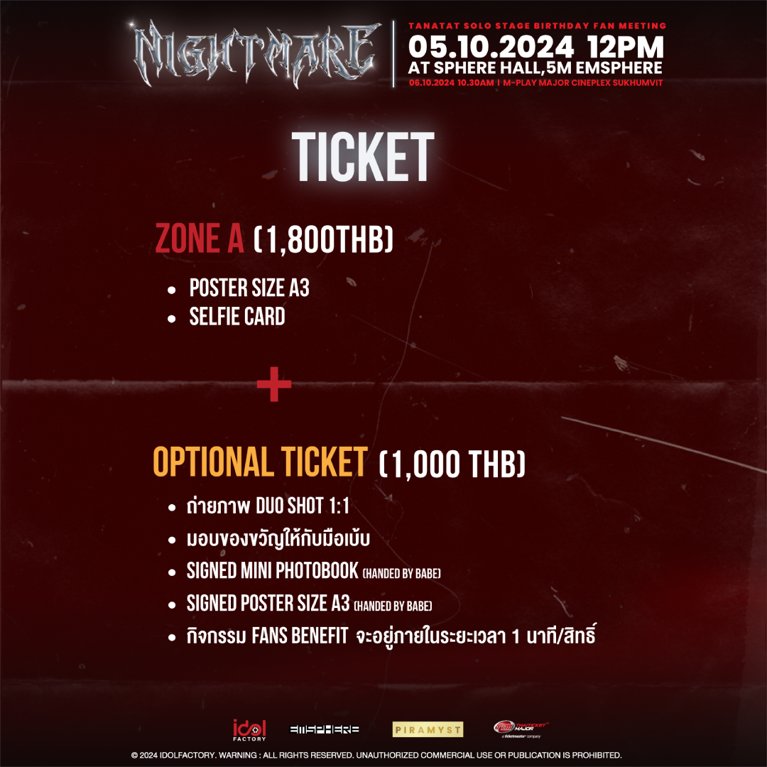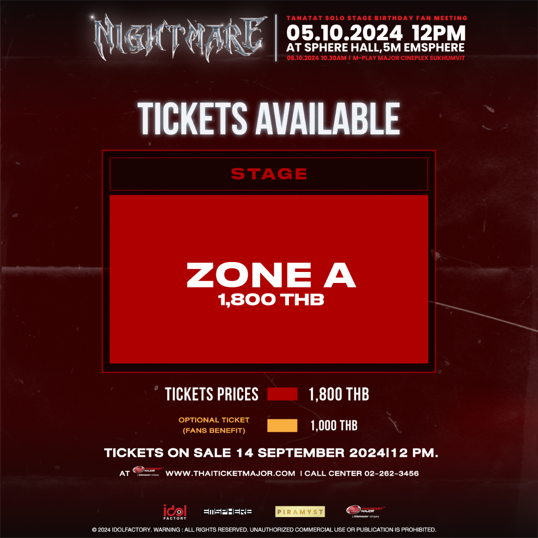 | ชื่องาน : | TANATAT SOLO STAGE BIRTHDAY FAN MEETING : NIGHTMARE |
