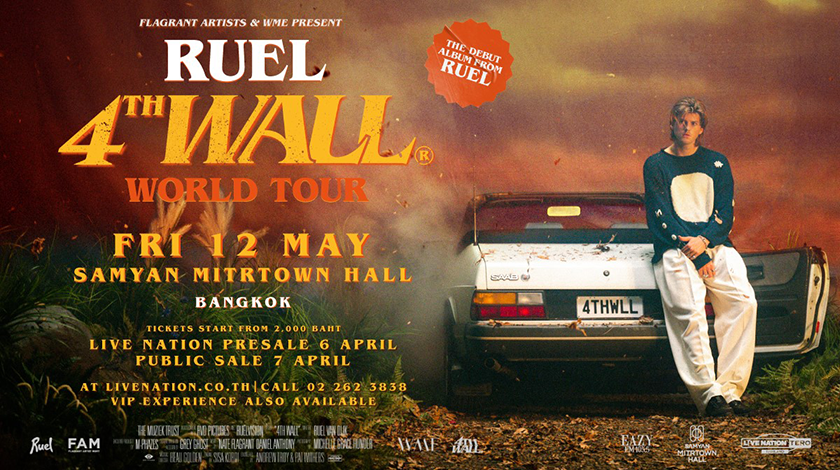 เตรียมพบกับ RUEL 4TH WALL WORLD TOUR BANGKOK 12 พฤษภาคมนี้ สมาชิกไลฟ์เนชั่นเทโร ซื้อบัตรก่อนใคร 6 เมษายน 10.00 - 22.00 น. ทาง