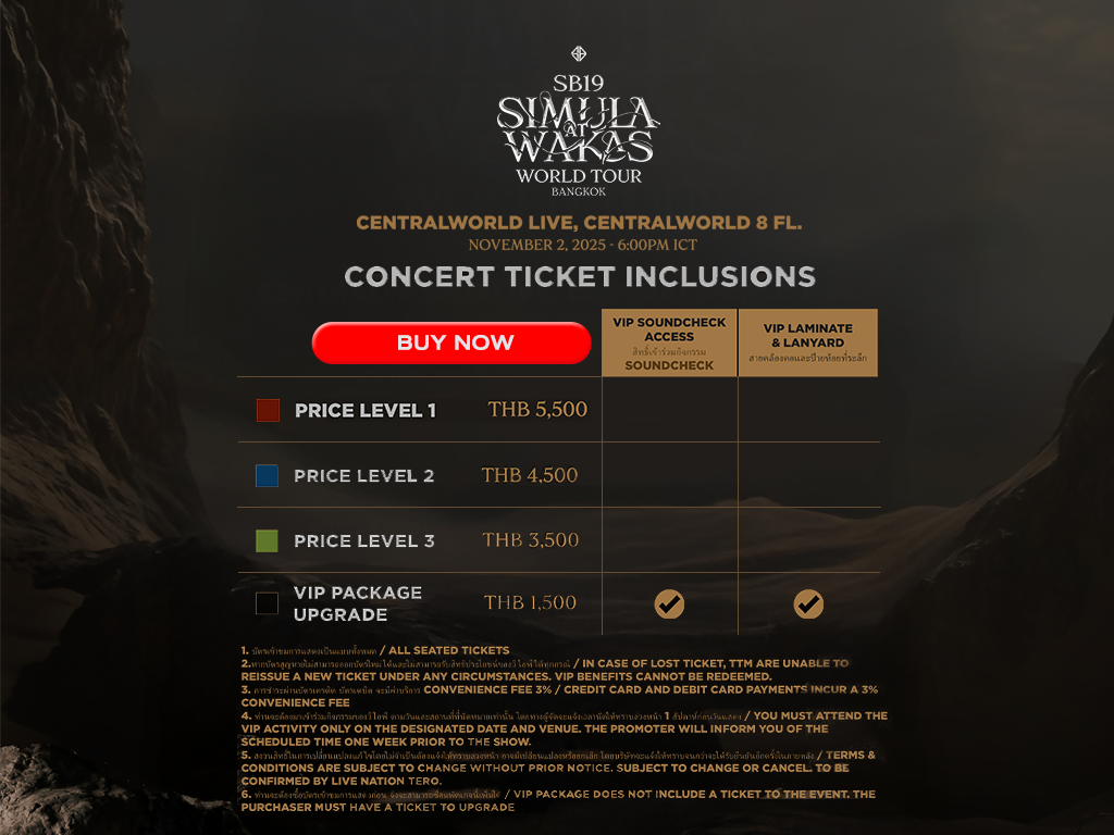 ‘SB19 SIMULA at WAKAS WORLD TOUR in Bangkok’ จำหน่ายบัตรรอบพรีเซลส์สำหรับสมาชิกไลฟ์ เนชั่น เทโร 18 กันยายน 2568 (10.00 – 22.00 น.) สมัครสมาชิกได้ที่