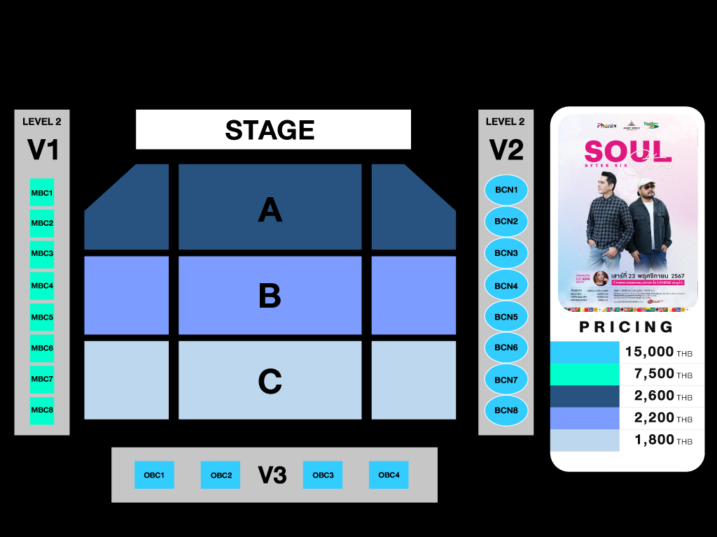 บัตร VIP ห้อง Open Balcony ราคา 15,000 บาท สำหรับ 4 ท่าน