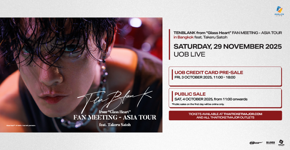 | ช่องทางการจำหน่าย: | thaiticketmajor.com และไทยทิคเก็ตเมเจอร์ทุกสาขา |