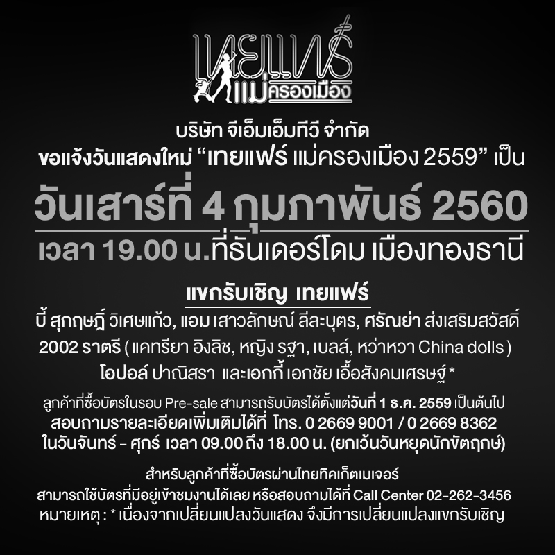 รอบวันแสดงใหม่ : วันเสาร์ที่ 4 กุมภาพันธ์ 2560 เวลา 19.00 น.