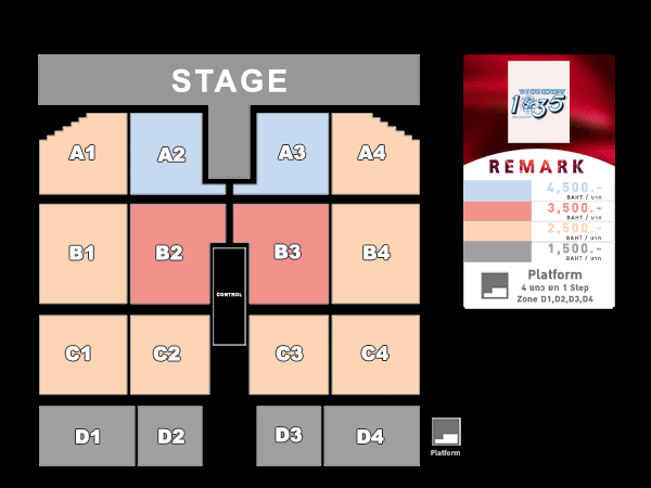 บัตรราคา 4,500 / 3,500 / 2,500 / 1,500 บาท