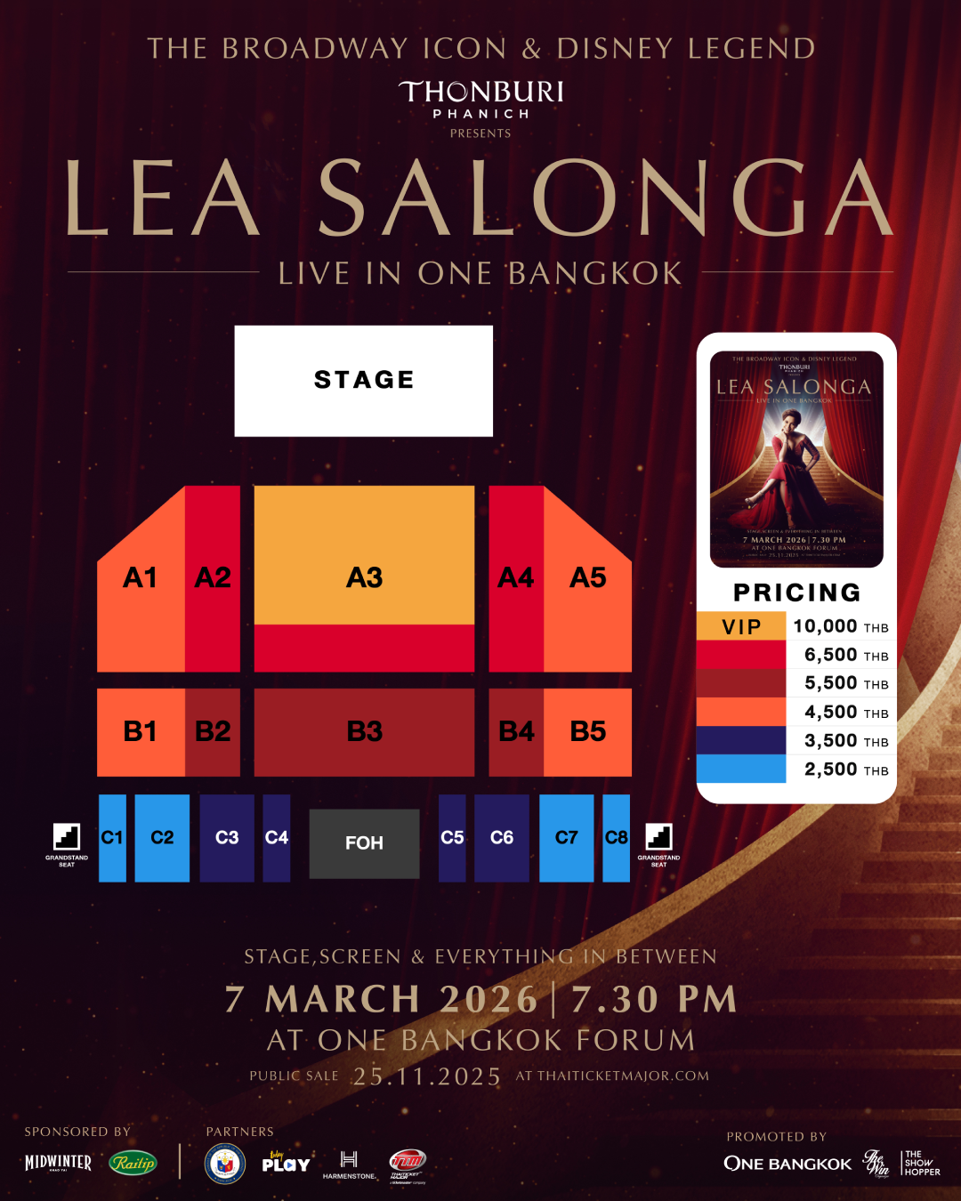 6. สำหรับผู้ชมที่นั่งรถเข็น (Wheelchair) โปรดเลือกที่นั่งริมทางเดินของโซน A และ B