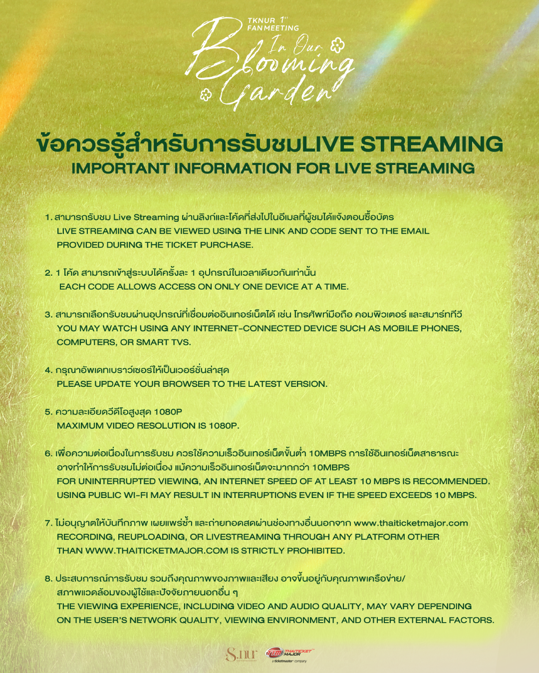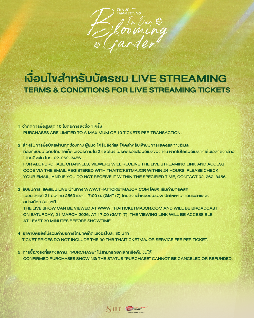 เงื่อนไขสำหรับบัตรชม Live Streaming / Terms & Conditions for Live Streaming Tickets