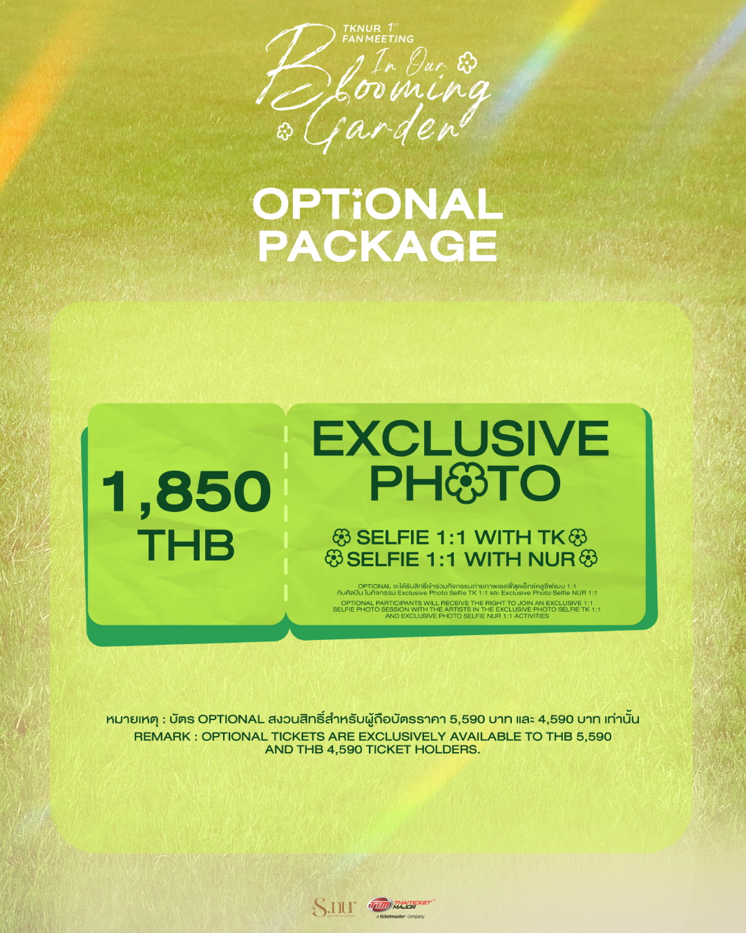 Optional Ticket: THB 1,850 Enjoy exclusive 1:1 selfie photo sessions with the artists, including Exclusive Photo Selfie TK 1:1 and Exclusive Photo Selfie NUR 1:1.
