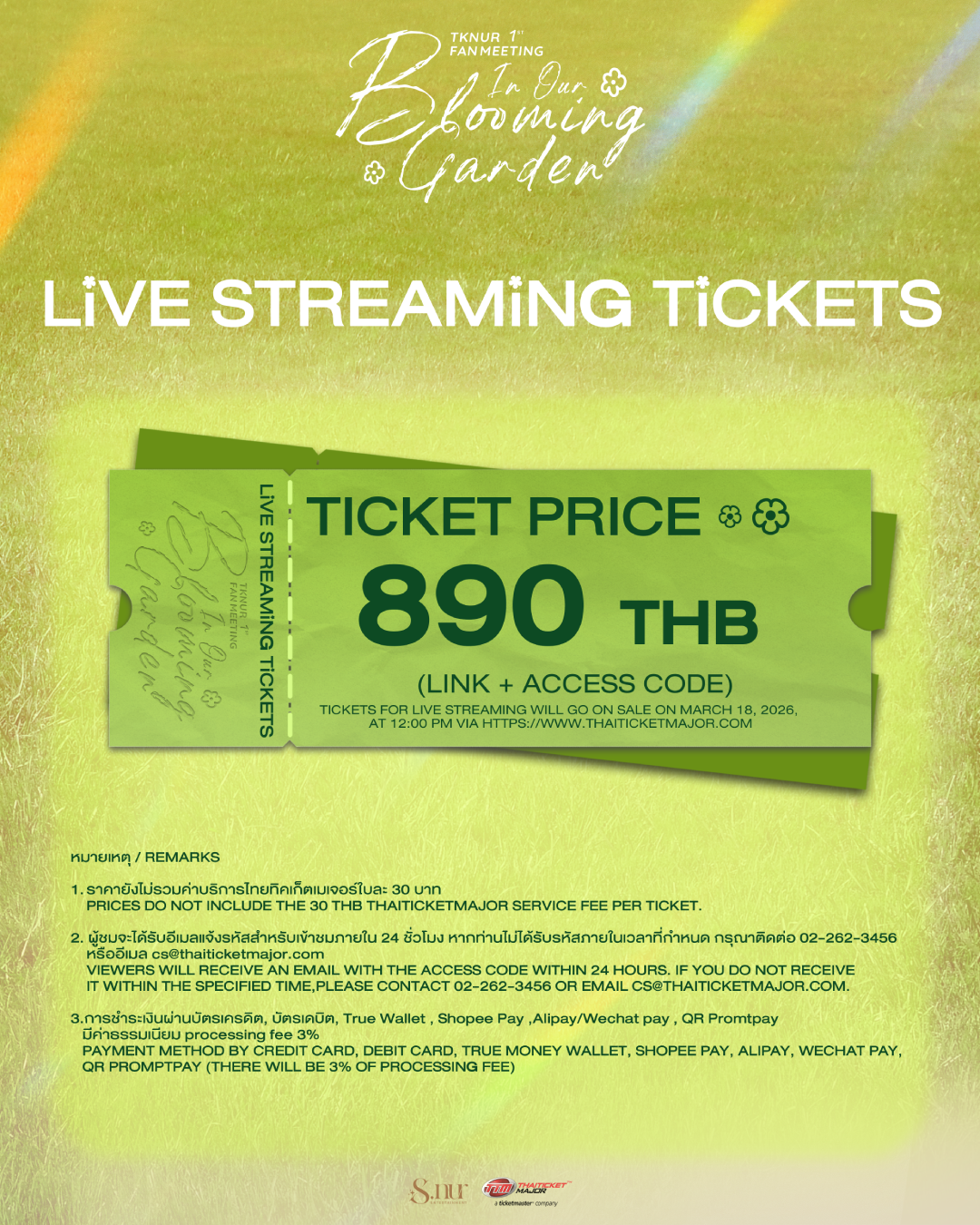 www.thaiticketmajor.com and will be broadcast on Saturday, 21 March 2026, at 17:00 (GMT+7). The viewing link will be accessible at least 30 minutes before showtime.