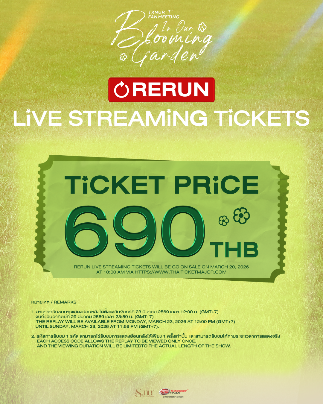 Rerun Live streaming tickets will be go on sale on March 20, 2026 at 10:00 AM via https://www.thaiticketmajor.com