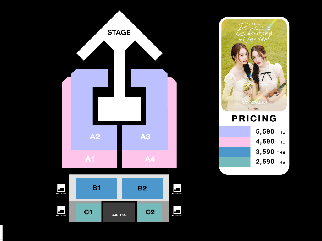 Ticket prices: THB 5,590 / THB 4,590 / THB 3,590 / THB 2,590 (excluding a ticketing service fee of THB 30).