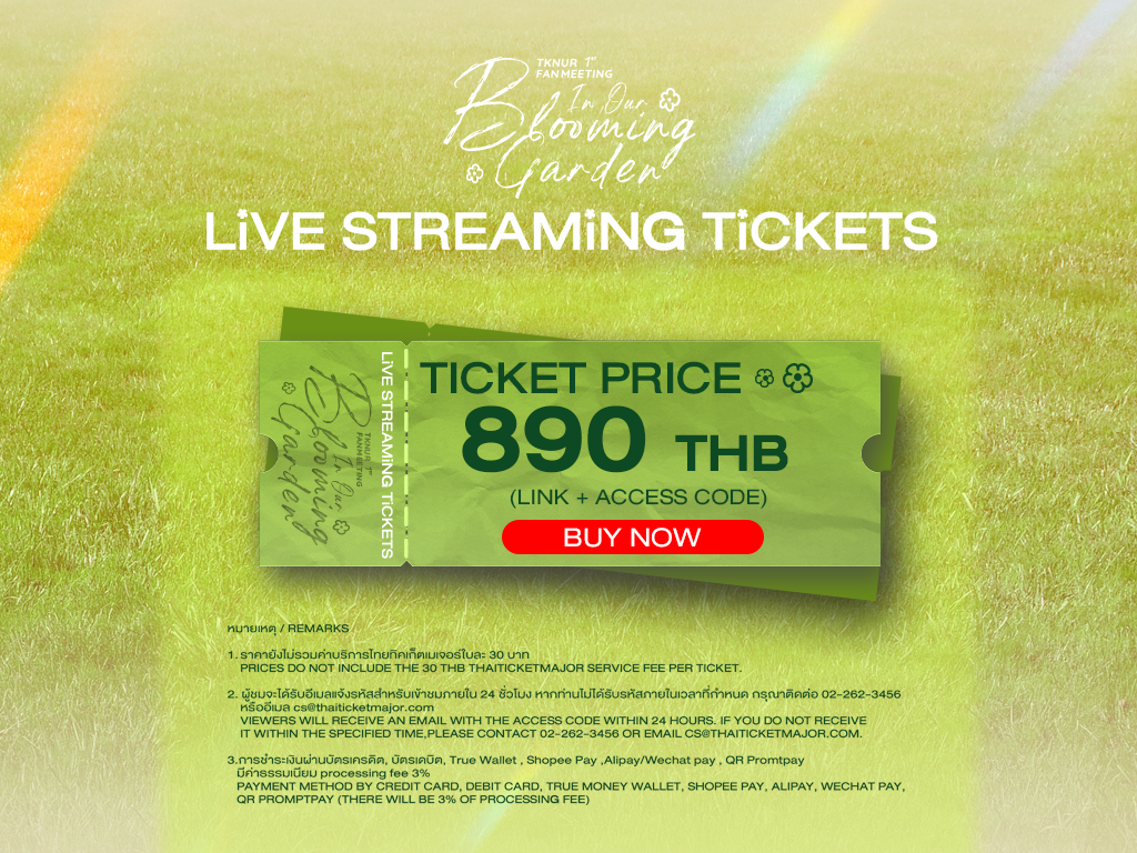 For all purchase channels, viewers will receive the live streaming link and access code via the email registered with ThaiTicketMajor within 24 hours. Please check your email, and if you do not receive it within the specified time, contact 02-262-3456.