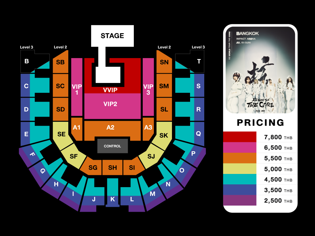 Xtraordinary Version X 7,800 / Xtraordinary Version G 6,500 / 5,500 / 5,000 / 4,500 / 3,500 และ 2,500 บาท (บัตรนั่งทุกที่นั่ง) *ใช้บัตรกระดาษเข้างาน* |