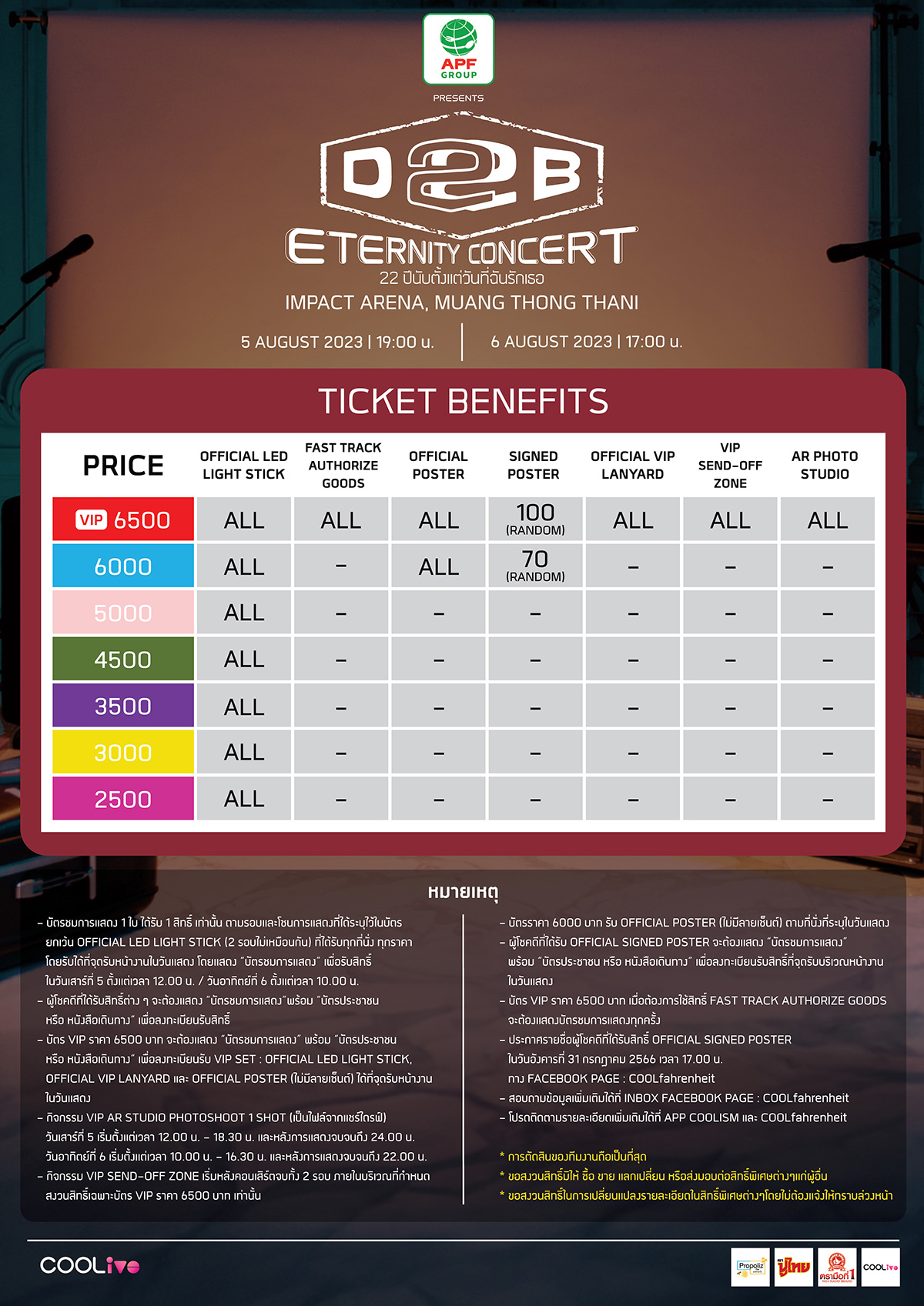 จำหน่ายที่ Thaiticketmajor ทุกสาขา รายละเอียดเพิ่มเติมที่เว็บไซต์และแอปพลิเคชั่น COOLISM