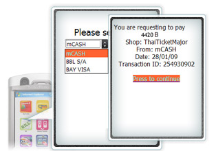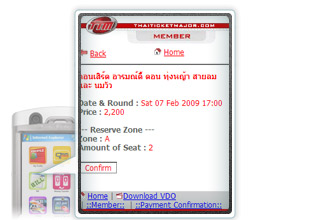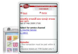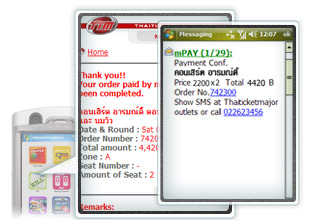 1. เข้าไปที่ mPAY menu จากโทรศัพท์มือถือ > เลือกเมนู Ticket > เลือกไทยทิคเก็ตเมเจอร์