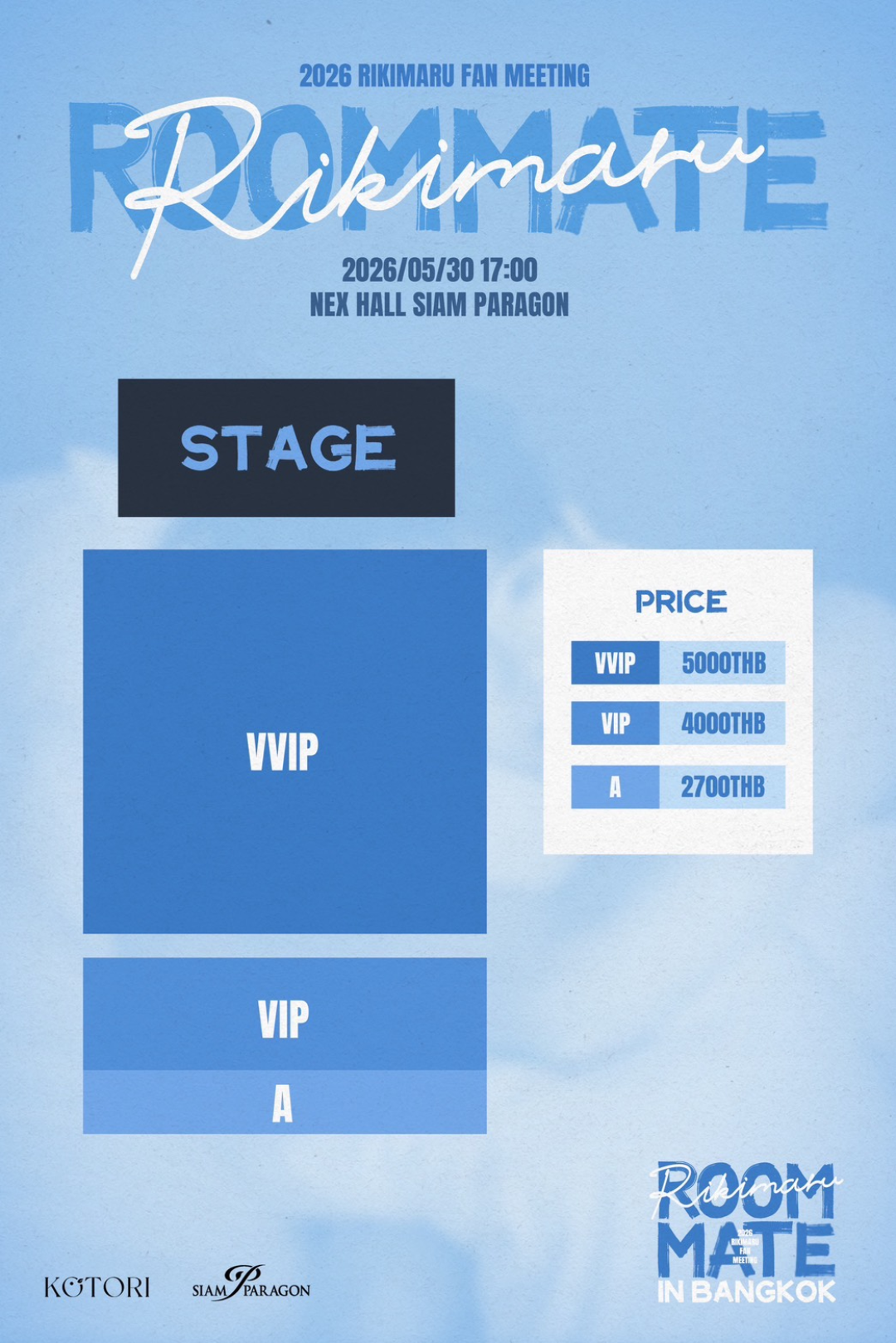 | ชื่องานแสดง: | 2026 RIKIMARU FAN MEETING「ROOMMATE」in Bangkok |