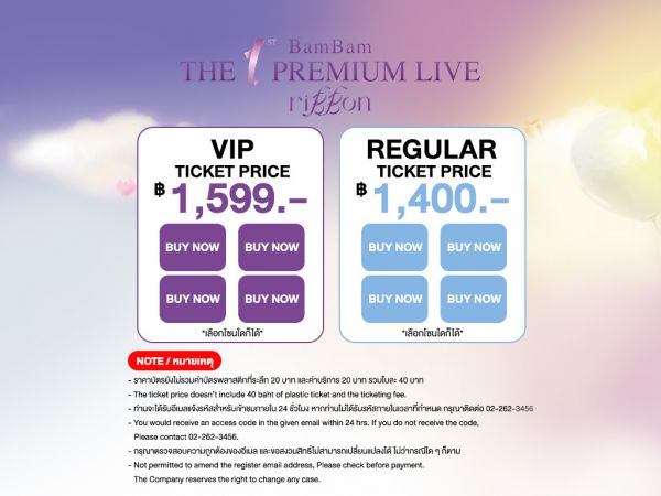 • รหัสสำหรับล็อกอินเข้าชมการแสดงไม่สามารถนำไปขายต่อ ขอคืนเงิน หรือ แลกเปลี่ยนใดๆ ได้