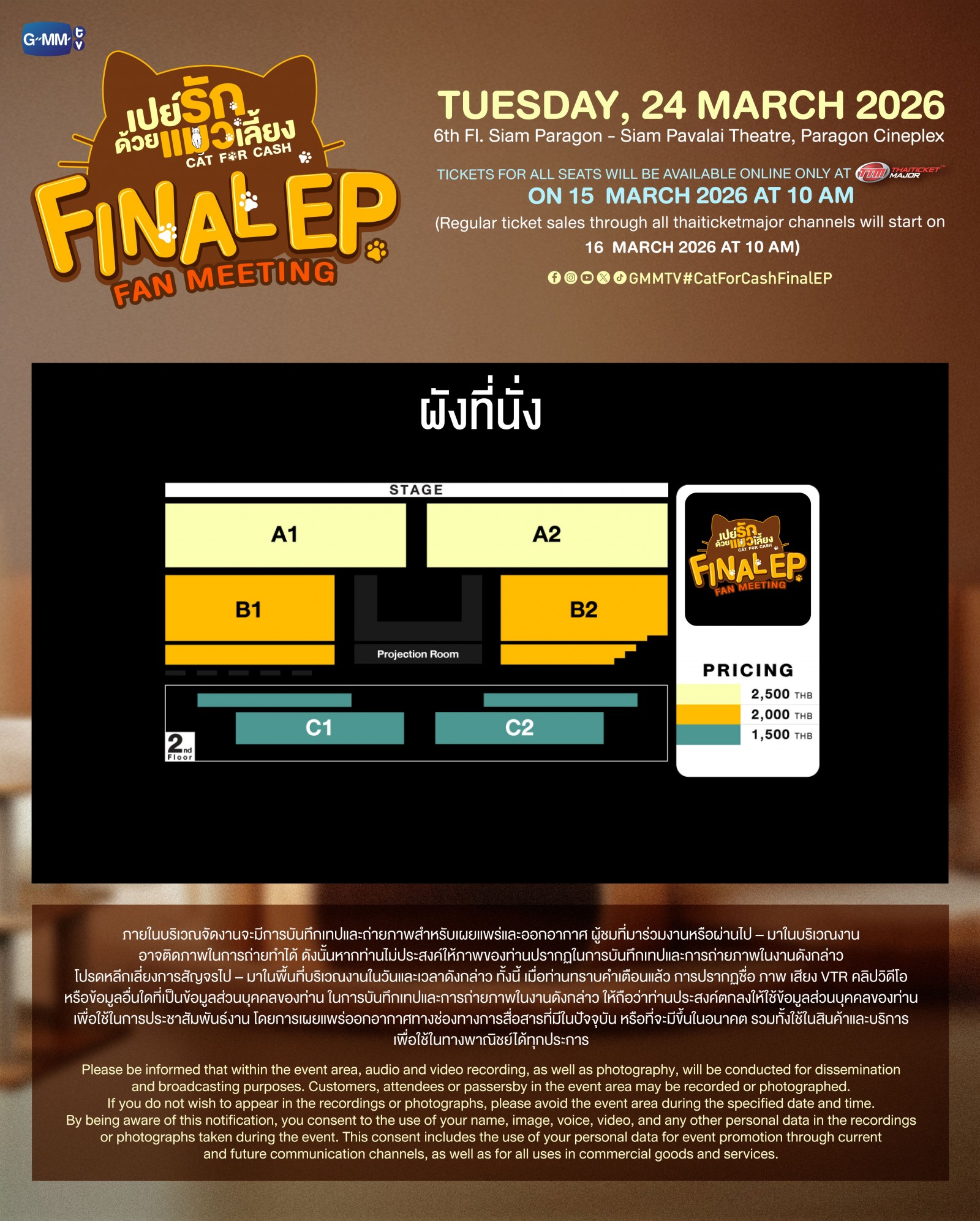 เปิดจำหน่ายบัตร ทุกช่องทางตามปกติ : วันจันทร์ที่ 16 มีนาคม 2569 เริ่มเวลา 10:00 น. เป็นต้นไป