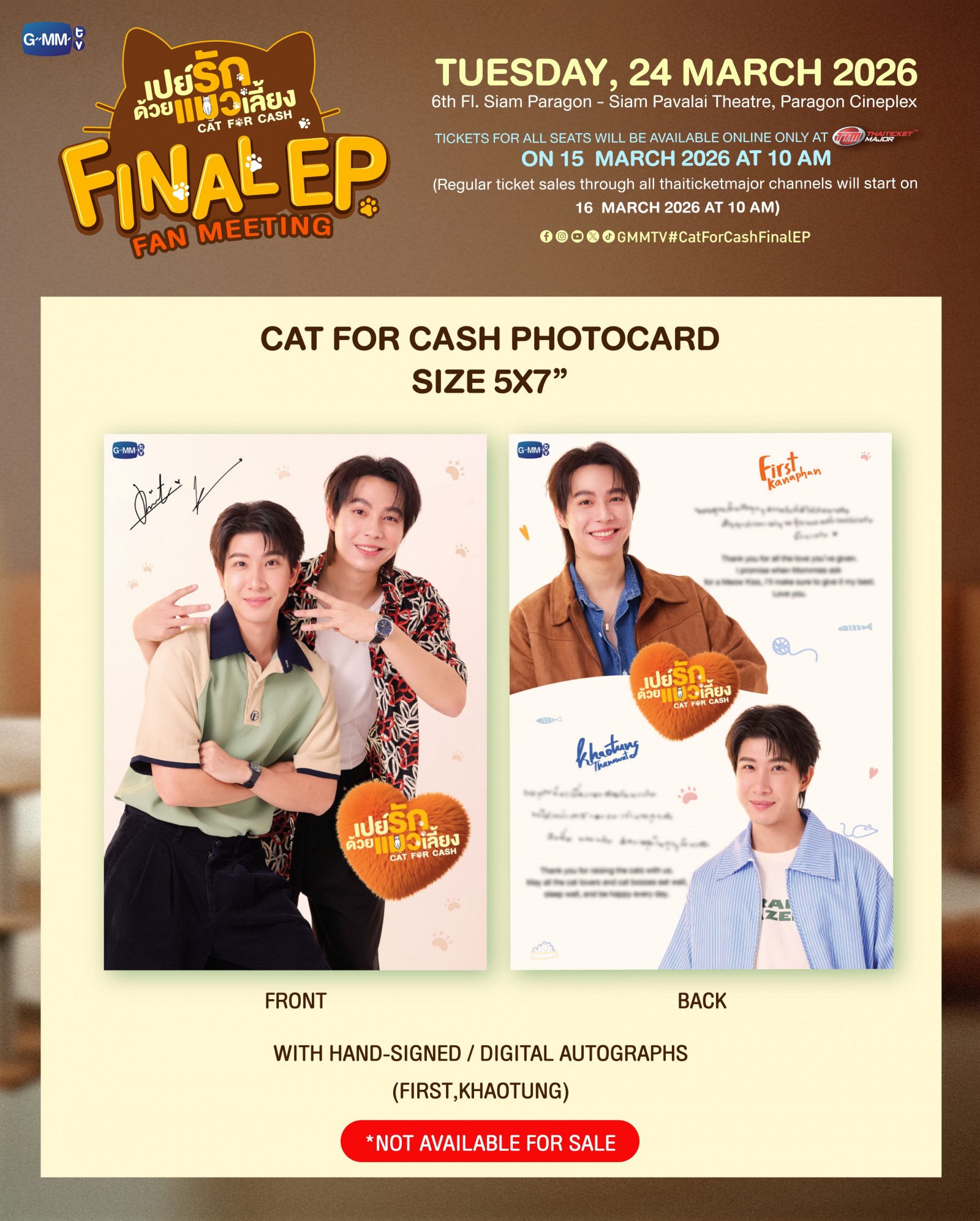 2. Cat for Cash Photocard พร้อมลายเซ็นจริงของศิลปิน และ Photocard แบบ digital autographs จะรับกับเจ้าหน้าที่ ณ จุดลงทะเบียนที่หน้างาน